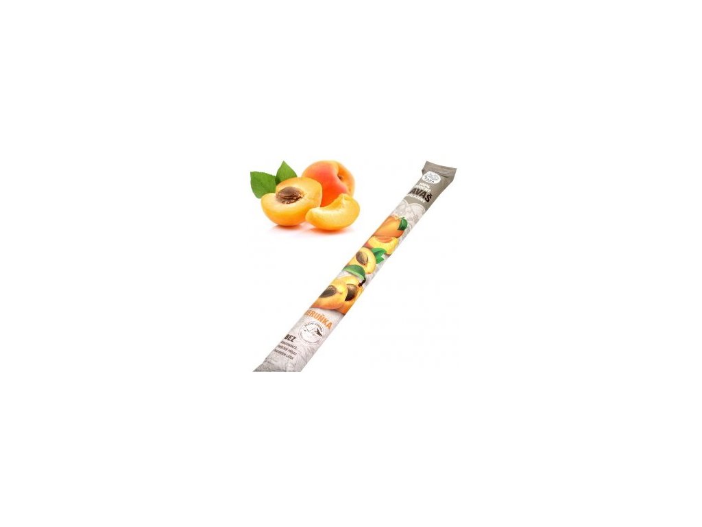 Kavkazské speciality bez konzervantů, umělých barviv, náhradních sladidel, ruční výroba. Tenké plátky z ovoce zamotané do dlouhé trubičky 40 cm. Ovocné trubičky (ovocný lavaš) jsou zdravé pochoutky vyrobené z ovoce. Jsou bohaté na vitamíny a stopové prvky díky surovinám, ze kterých jsou zpracované. Již naše babičky nám dávali švestky pro lepší fungování a činnost střev, jablko pro vysoký obsah draslíků a vlákniny, meruňky pro posílení imunity a broskve pro správné fungování srdce. Ovocnými trubičkami podpoříte zdravou výživu a přispějete ke zdravému životnímu stylu. Ovocná dřen ze zralého ovce je sušená jako placka při 40 - 50 °C. Poté je stočená do rolády o délce 40 cm o průměru 3,5 cm a zabalená do fólie. Krájí se jako roládka, nebo na proužky, či jiné tvary a pojídá buď samostatně jako sušené ovoce, nebo s oříšky, semeny či ořechy. Složení: meruňky 100% Výživové údaje na 100g: energie 1294Kj/305kcal, tuky 0,8g z toho nasycené mastné kyseliny 0,2g, sacharidy 69,5g z toho cukry 56g, bílkoviny 3,8g, sůl 0,013g EAN: 8594179820177Doplňkové parametry