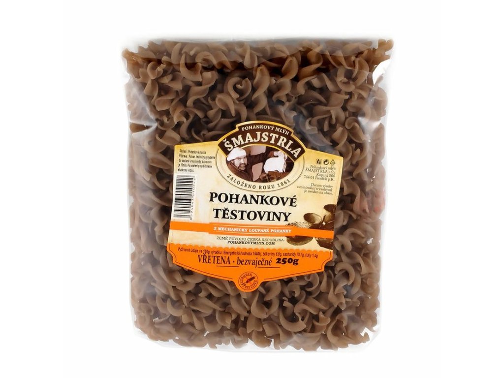 Pohankové těstoviny z mechanicky loupané pohanky. Bezvaječné. Vůbec se nemusíte bát zvláštní tmavé barvy – za to všechno může jen a jen pohanka. Rostlinka, která blahodárně působí na Váš organismus, trávení a vůbec dobrou náladu celkově. Pohanka je takový malý skvělý pomocník pro všechny, kteří se rozhodli k lepšímu zlepšit svůj životní styl a jídelníček. Složení: pohanková mouka,voda Země původu: Česká republika Výživové údaje na 100g výrobku: energetická hodnota 1540kJ; bílkoviny 6,9g; sacharidy 78,7g; tuky 1,4g. EAN: 8594043010222Doplňkové parametry