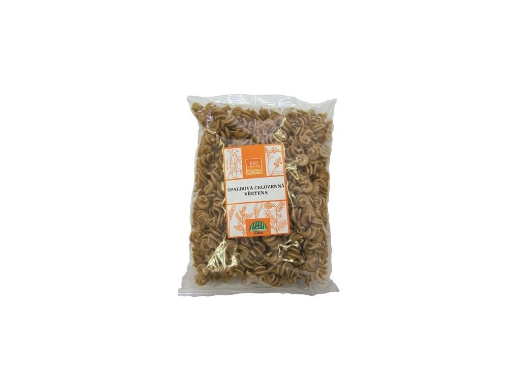 Celozrnné těstoviny jsou vhodné jako příloha k omáčkám, k přípravě salátů a různých těstovinových variací. Složení: špaldová mouka celozrnná BIO. Výrobek obsahuje lepek. Výživové údaje na 100g: energetická hodnota 1500kJ/358kcal; tuky 1,8g z toho nasycené mastné kyseliny 0,3g; sacharidy 68g z toho cukry 2,5g; vláknina 5,7g; bílkoviny 13g; sůl <0,01g. EAN: 8594004259219Doplňkové parametry
