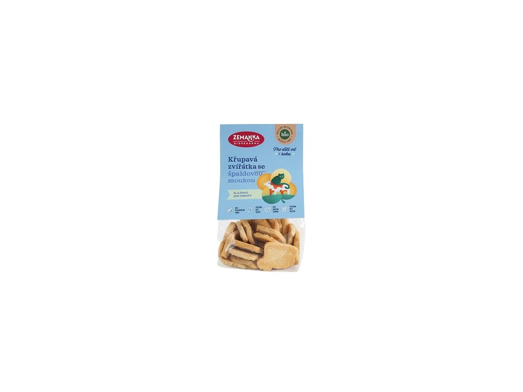 Špaldová bio zvířátka jsou křupavé sušenky vyrobené z kvalitní bio špaldové mouky. Neobsahují palmový tuk ani živočišné složky, díky čemuž jsou vhodná i pro vegany. Sušenky mají jemnou přirozenou chuť špaldy a jsou tvarované do hravých zvířátek, která potěší děti i dospělé. Jsou vhodné jako sladké mlsání během dne nebo k doplnění odpolední svačiny. Složení: Mouka ŠPALDOVÁ hladká* 61 %, rýžový sirup*, neztužený rostlinný tuk* (slunečnicový olej a kakaové máslo v různém poměru, voda, emulgátor: slunečnicový lecitin, kyseliny: kyselina citronová), agávový sirup*. Neobsahuje žádné kypřící látky. Může obsahovat stopy vajec, mléčných výrobků (včetně laktózy) a skořápkových plodů (lískové a vlašské ořechy). *produkt kontrolovaného ekologického zemědělství Výživové údaje na 100g: energetická hodnota 1781kJ/427kcal, tuky 15g z toho nasycené mastné kyseliny 3,3g, sacharidy 64g z toho cukry 17g, vláknina 0g, bílkoviny 8,4g, sůl 0g EAN: 8594071211370Doplňkové parametry